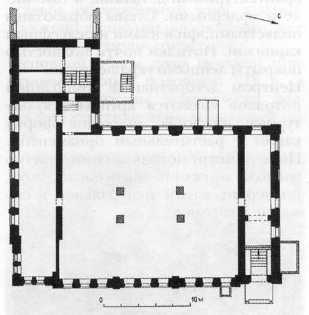 Главный фасад являет собой сложную декоративную композицию, включающую в себя обилие деталей и форм, заимствованных из различных стилевых источников. Она строится на контрасте активных вертикальных акцентов, создаваемых декоративными фронтонами, с горизонталями цоколя и профилированного карниза. Фасад имеет трехчастную систему членения: цен-. тральная и две боковые оси выявлены расположением венчающих фронтонов, раскреповкой и прерыванием линии карниза, в местах разрыва которого поле тимпана продолжено до линии наличников и арочного завершения главного входа. На гладкой поверхности последнего выделяется лепной орнаментальный узор в клеймах. Для отделки фасада характерно применение деталей мелкого масштаба: аркатурных поясков карниза, заполненных лепным орнаментом, зубчиков фронтонов, лепнины наличников, филенок и т.п. Композиция главного фасада составляет единое целое с фасадом небольшого флигеля, примыкающего к главному дому, и воротами. Вообще же в ней трудно отыскать стилевую определенность. Например, «итальянское» окно соседствует здесь с лепными деталями в барочном вкусе. К барочной традиции можно также отнести и прием решения фронтонов с прерывании линии карниза. Архитектурное убранство дома дополнено ажурной кованой решеткой навеса над крыльцом главного входа. |