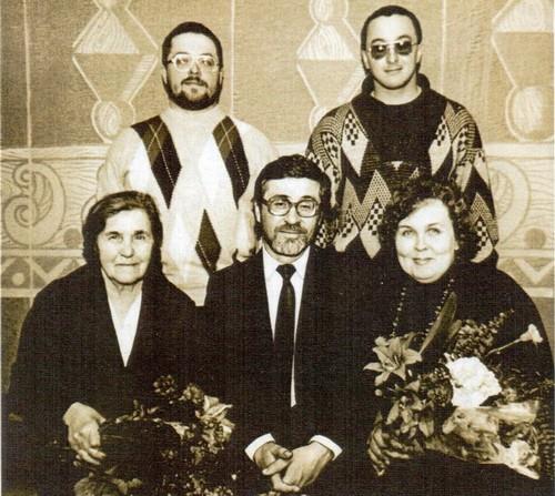 Март 1991 года, 50-летие В.Д. Савина. С матерью Таисьей Егоровной, женой Маргаритой Ивановной и сыновьями Андреем и Владимиром. Фото из семейного архива