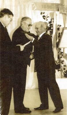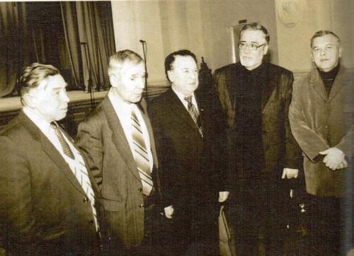 1994 год. Вручение знаков «Заслуженный работник культуры РФ» В.Д. Савину и В.Ф. Виноградову (в центре) - соратнику, наставнику, другу. Справа жена В.Д.Савина - Маргарита Ивановна. Фото из семейного архива