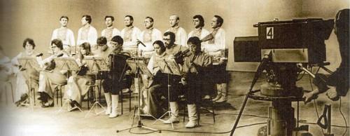 70-е годы. Мужская группа Баранниковского хора - запись на областном телевидении. Фото из семейного архива