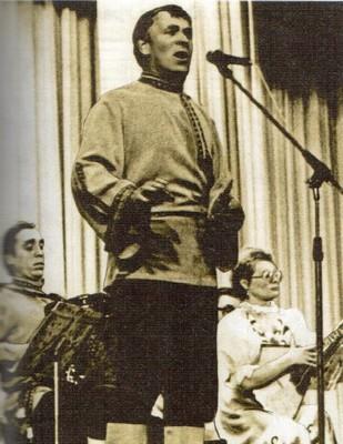 Солист Баранниковского хора - Иван Рыльцов - первый исполнитель многих песен В. Савина на сцене г.Кыштым (1993 г.). Фото из семейного архива