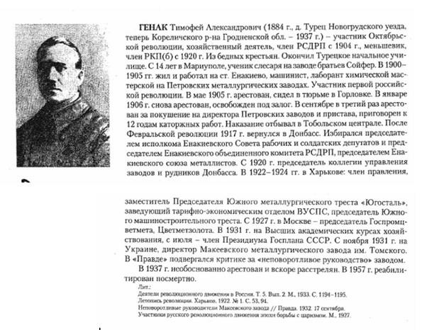 Источник: Енакиево как на ладони: сайт города Енакиево. - URL: http://enakievets.info/publ/enakievo_kak_na_ladoni/zhiteli_enakievo/genak_timofej_aleksandrovich_revoljucioner/5-1-0-802?ysclid=lwet69np5w483422024 (дата обращения: 20.05.2024). |