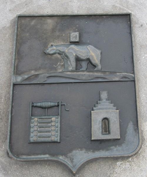 | Старый герб Екатеринбурга на плотине городского пруда |