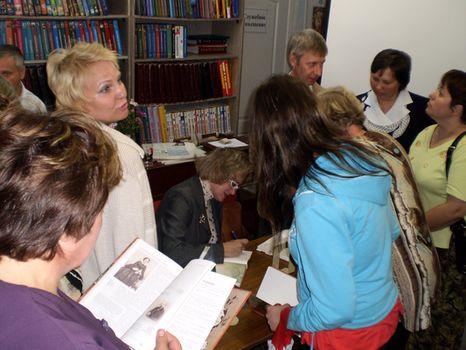 М. Ларионова, Е. Пирогова, Е. Неклюдов на презентации книги "Род Турчаниновых" в Сысертской районной библиотеке. Фото Л. Аверкиевой
