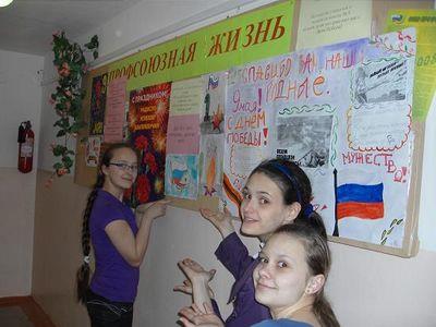 Учащиеся полевской школы № 8 оформляют стенд в КЦСОН