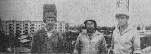 На фото: монтажники Е.В. Лихачев, В.А. Якимов, Ю.В. Гладуновский. Фото В. Павловского.