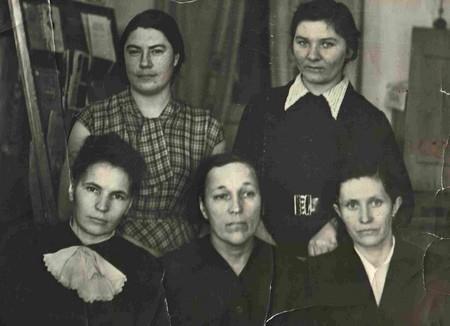 Коллектив библиотеки в 1958 году. Сидит справа директор Н.А. Польщукова. Фото из архива ЦРБ.