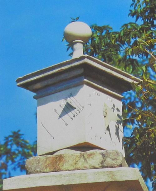 Солнечные часы (1773 г.) изготовлены мастерами Мраморского карьера. Автор проекта неизвестен. Используются по назначению. В мае 1969 г. замечен часовой квадр мастерами завода мраморных изделий И. Мальцевым и И. Прожериным.