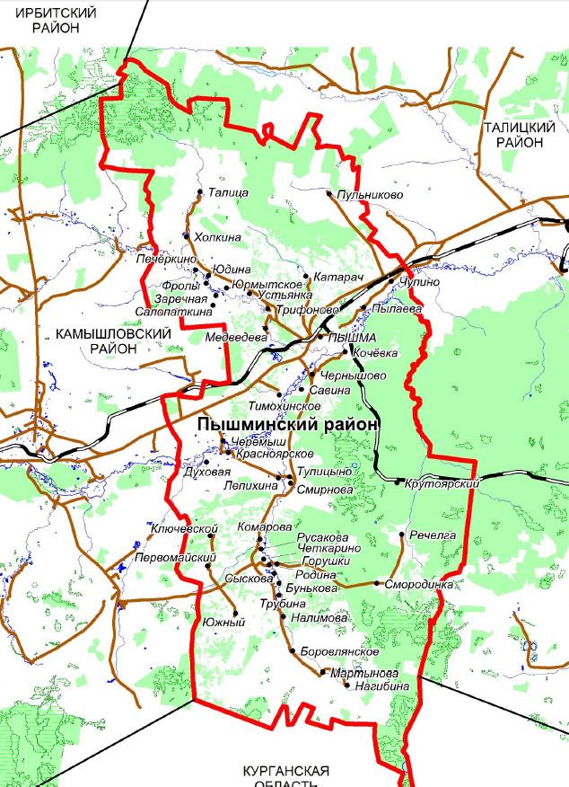 Схема административно-территориальной единицы Свердловской области «Пышминский район»