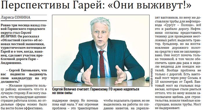 Осипова А. С. Дорог нет, зато УАЗики есть : [обзор социально-экономического состояния Гаринского городского округа] // Областная газета. — Екатеринбург. - 2015. - 16 января (№ 5). - С. II.