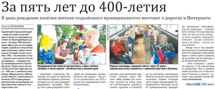Кошкина О. С. За пять лет до 400-летия : в день рождения поселка жители отдаленного муниципалитета мечтают о дорогах и интернете / О. Кошкина ; фот. В. Мартьянов // Областная газета. — Екатеринбург. - 2018. - 10 июля (№ 119). - C. III : фот.