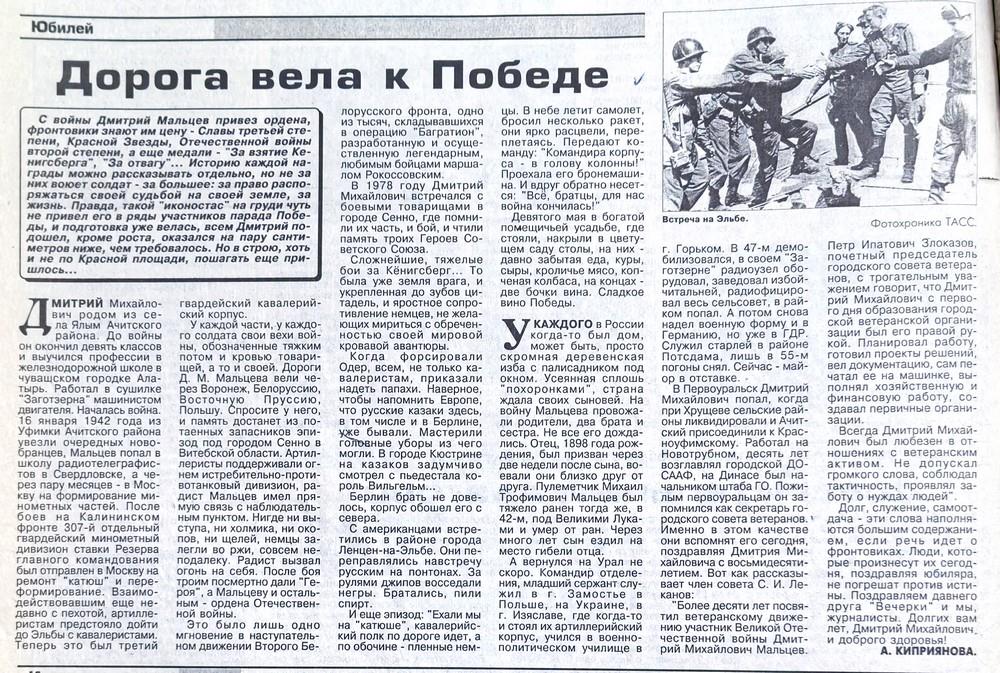 Киприянова А. Дорога вела к Победе. Статья